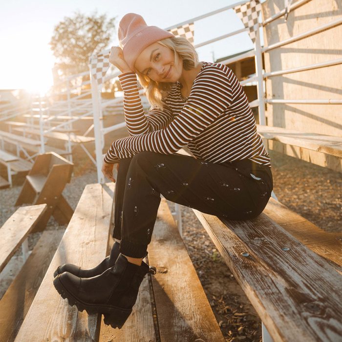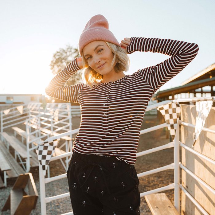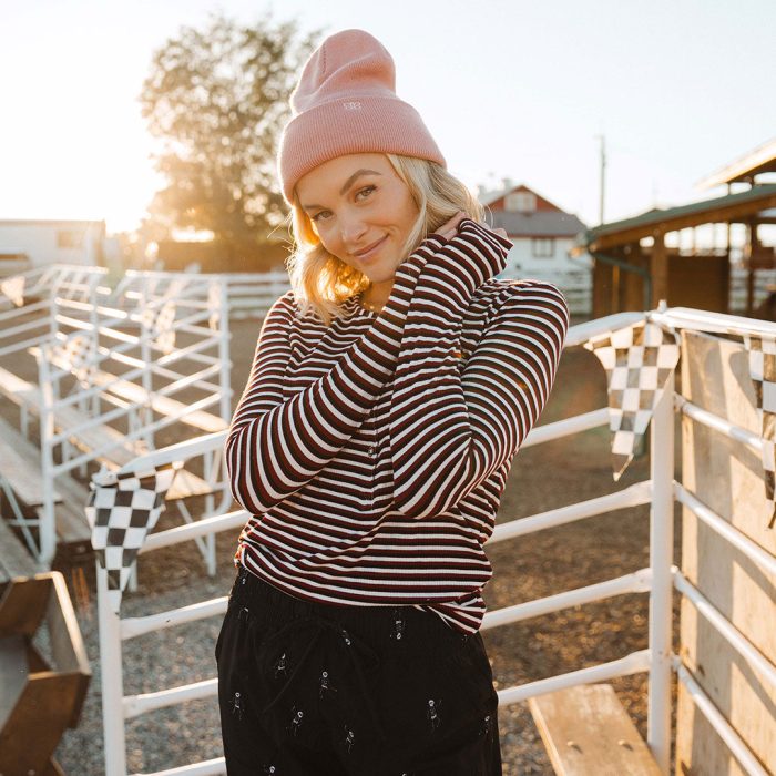 Riley Long Sleeve Stripe Tee, Ivory/Brown