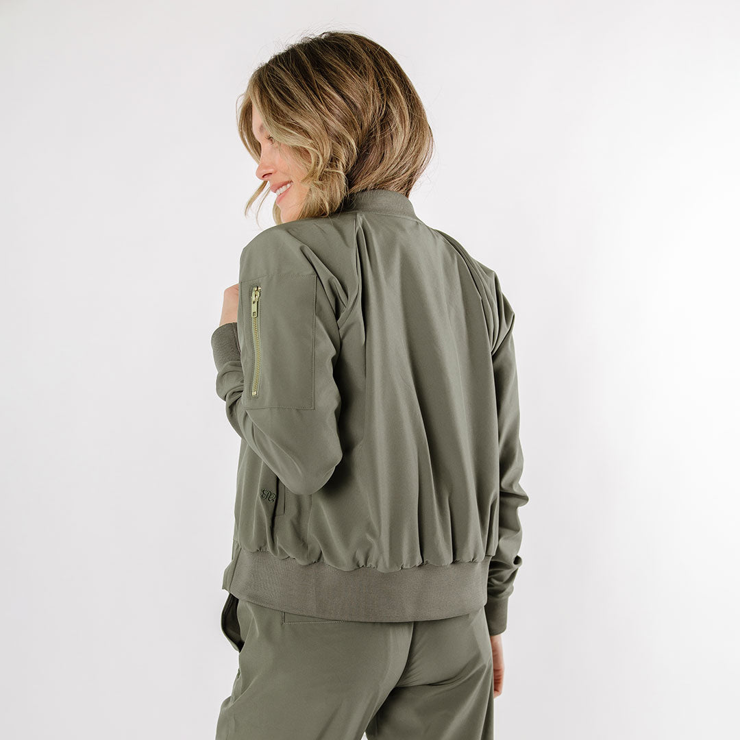 - Olive bomber jacket