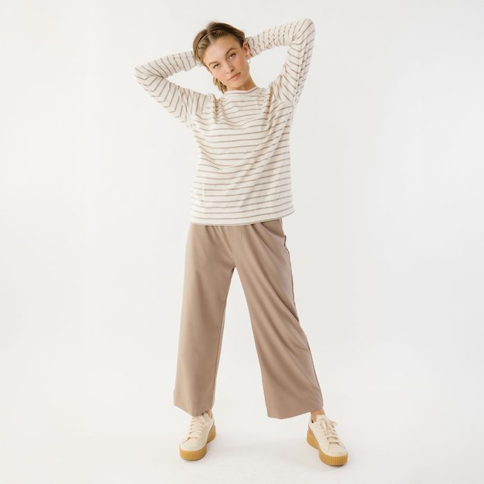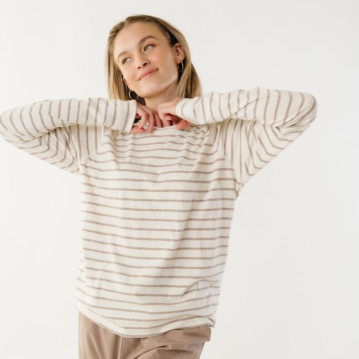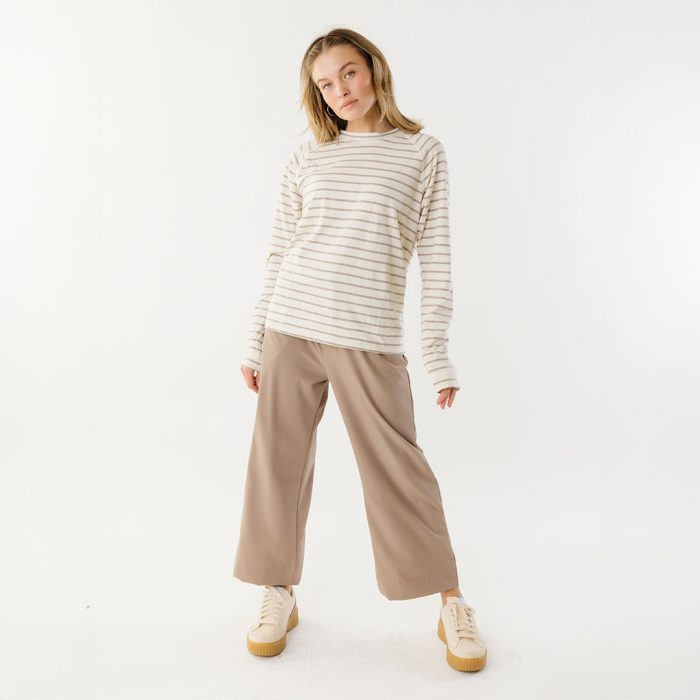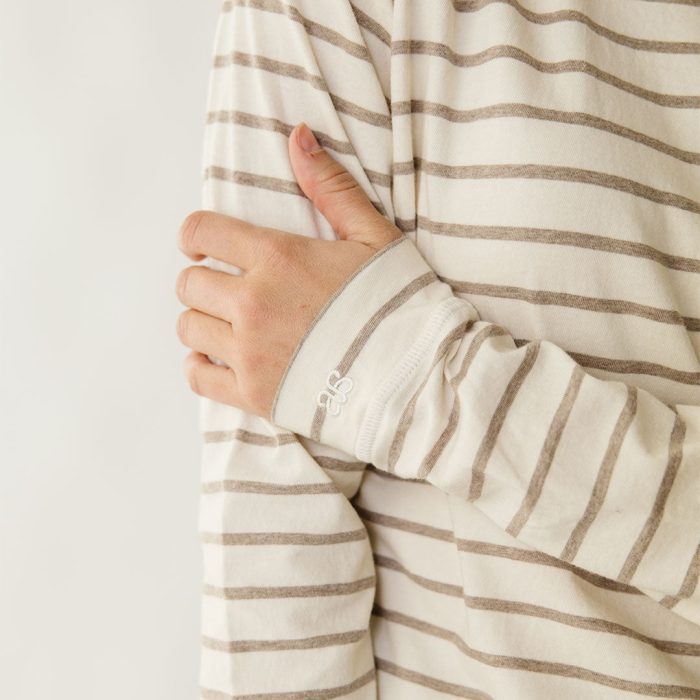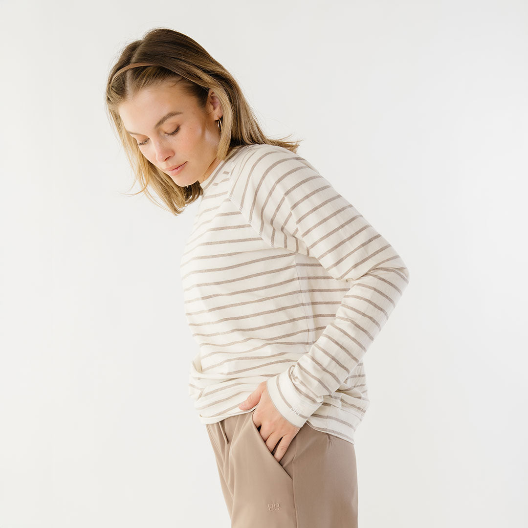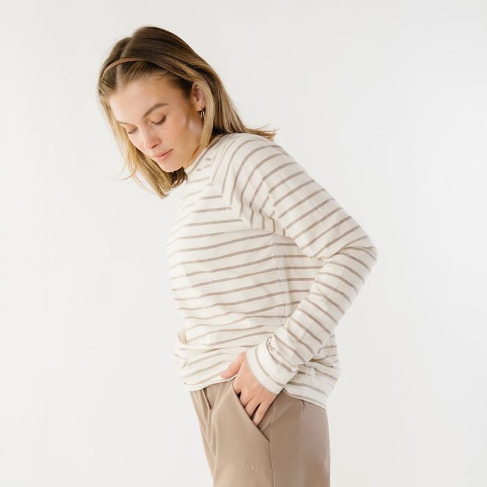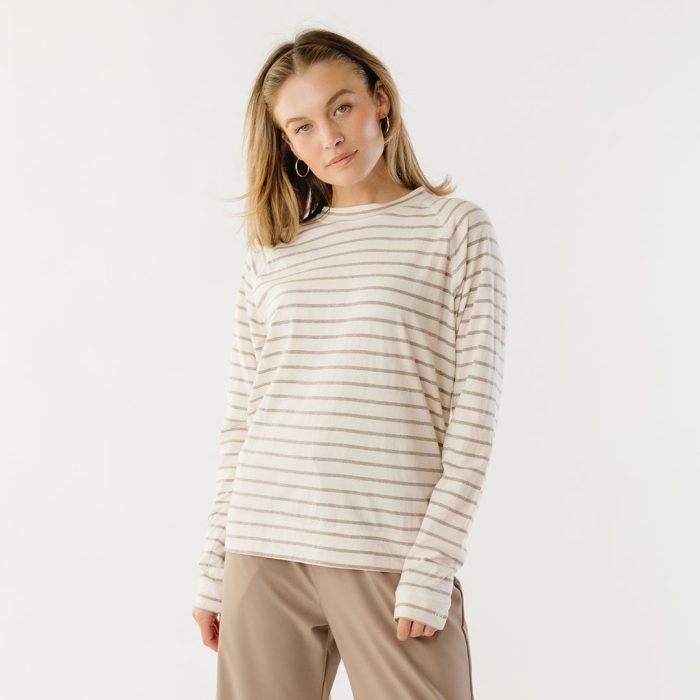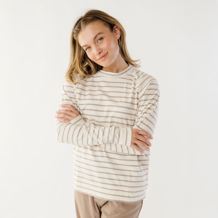 - Riley Long Sleeve striped top in ivory and brown